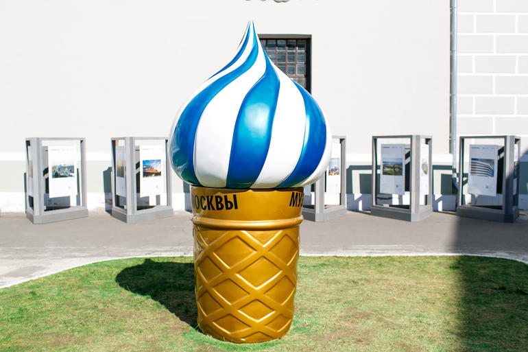 Скульптура под названием «МОСКРИМ» создана в виде любимого москвичами стаканчика мороженого. Рядом с площадкой AdidasCREATORSBASE, где играют в футбол и проходят трансляции футбольных матчей, «МОСКРИМ» охладит горячие головы болельщиков и просто отдыхающих этим жарким футбольным летом.