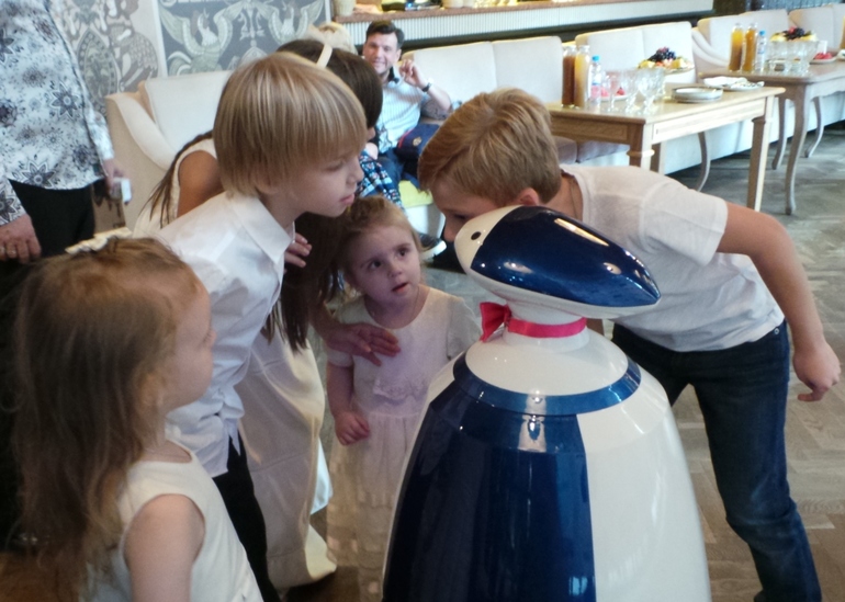 Дети радовались и визжали от восторга, ведь теперь в их доме наряду с «нянями человеками», появится няня робот, которая, кстати, обладает весьма расширенным функционалом. Няня робот Борис свободно перемещается в пространстве и даже разговаривает. С ним легко учить уроки, читать и даже играть, он рассказывает сказки, убаюкивает и даже поет и танцует.