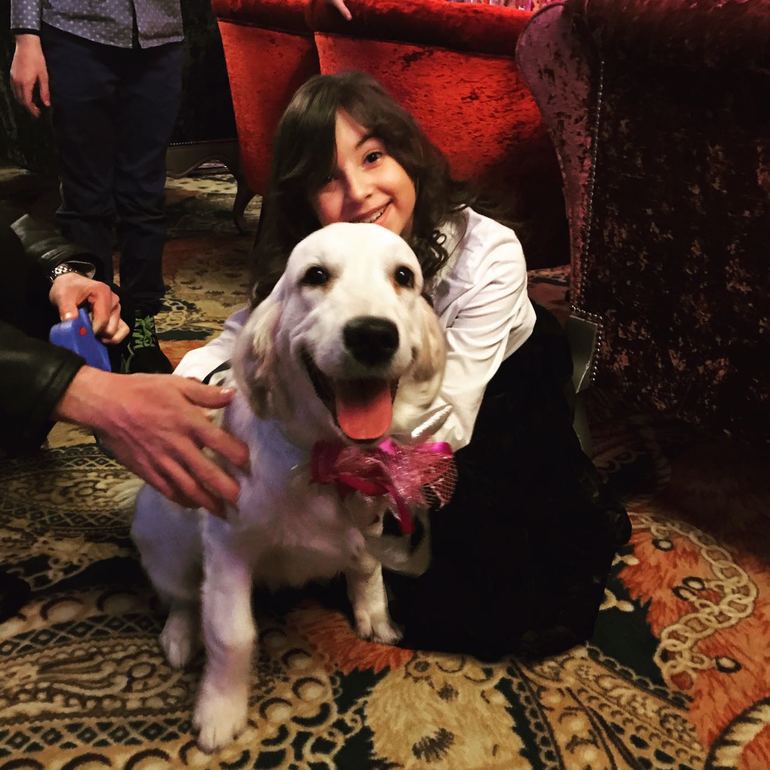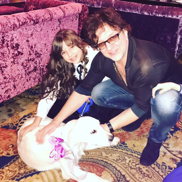 На днях в семье известного музыканта Ромы Жукова случилось настоящее «пополнение» - новым членом семьи стал золотистый ретривер по кличке Сильвия. Четырехмесячная девочка весит 15 кг, но уже через несколько месяцев ее вес достигнет 25 -30 кг. Многодетных родителей не пугает такой прогноз, ведь они сами выбирали пса, который и был подарен на 12й день рождения старшей дочери Полине. Помимо долгожданной собаки, папа Рома закатил шикарный пир для всех многочисленных друзей любимой дочери, накрыв столы более чем на 70 человек. Именинница развлекала гостей исполнением песен совместно с группой «Джинсовые мальчики» и веселыми конкурсами. Шумно и весело прошел праздник, и только иногда можно было заметить легкую грусть в поздравлениях артиста, который признался, что время летит незаметно и его старшая дочь - уже совсем невеста.