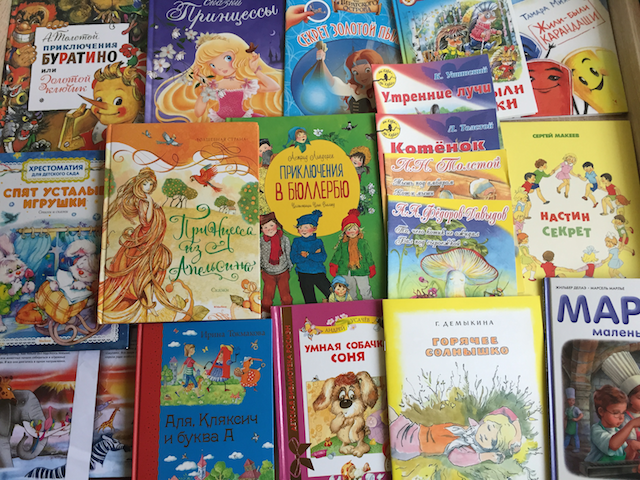 Наше чтение этой весной, за исключением трех недель в марте, когда мы были в России. Там у нас другие книги, но я забыла их сфотографировать.