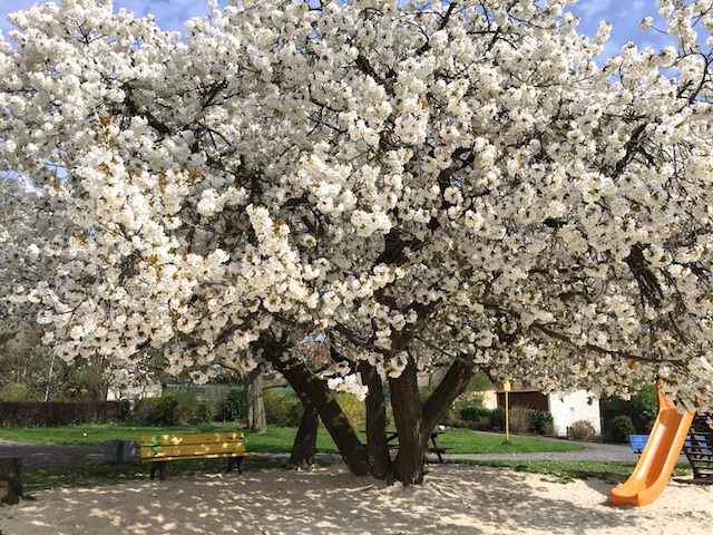 У нас весна в самом разгаре и девочка моя с любопытством и радостью открывает для себя этот мир с его цветущей, благоухающей, поющей стороны.