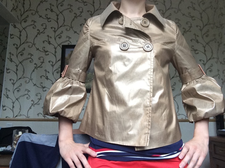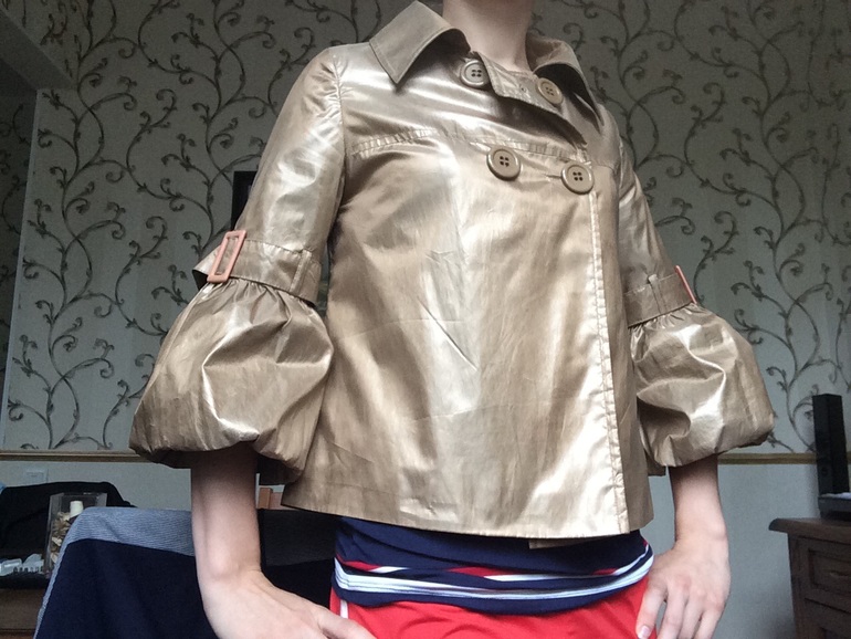 1. Плащ в идеальном состоянии (надевала 2 раза в солнечную погоду). В реале цвет алый (не такой ядовитый как на фото). На 42р или 44(грудь не более 2-го размера).экв.700р.