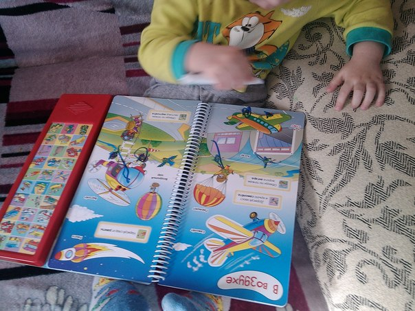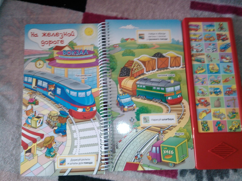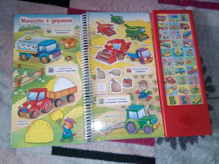 Справа панель с кнопками-машинками, но нажимая на них, ты слышишь повторение задания, написанного в книге. Ну, и еще звуки этих машин. Это, конечно, плюс!