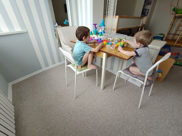 👶 8. Подготовила им балкон, типа игры на свежем воздухе. На самом деле эффекта какого-то не чувствую, сказать, что прям смена обстановки - не. Но на балконе кинетический песок разрешаю, пылесосить легко и не растаскивается, хотя они в меру аккуратно уже играют. Или вот выдавала по настольной игре, копались каждый в своей, надоедало - я новую подкидывала. Таким образом они тоже сами оставались, что для меня большая победа.