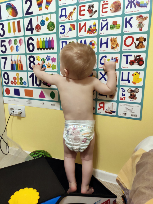 Поиграв со старшими, могу со спокойной совестью откланяться и поговорить с младшим, он на все пальчиком показывает, надо озвучивать: