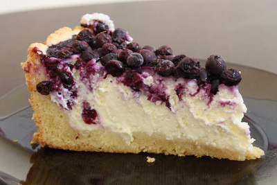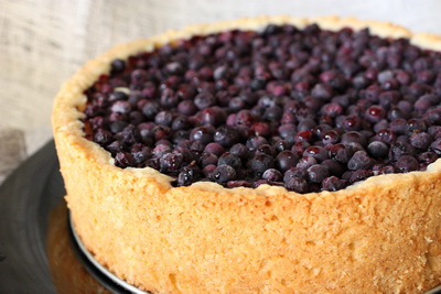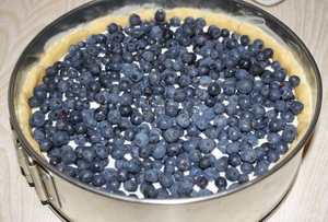 Выливаем начинку в тесто, сверху насыпаем ягоды.
