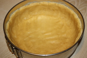 Охлажденное тесто выкладываем в смазанную разъемную форму так, чтобы получились бортики высотой около 4-5 см.