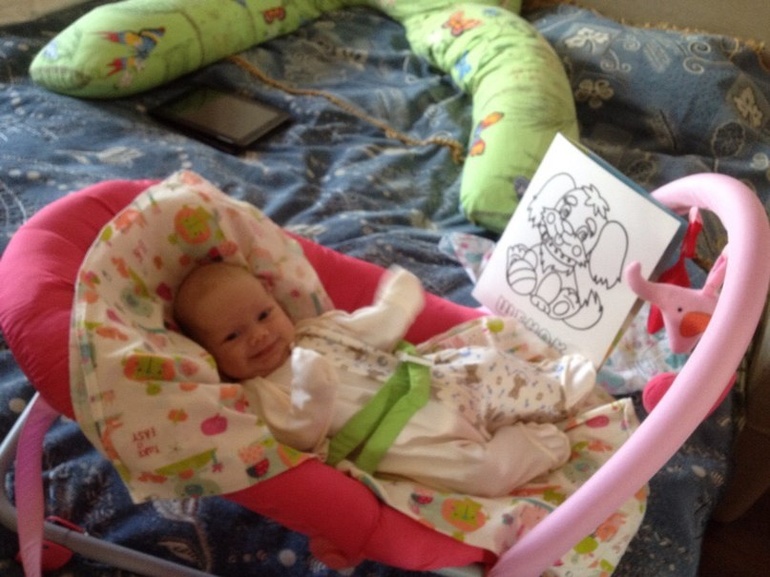 Пасибки! Ага, показываю картинки (купила 4 раскраски специально черно-белые), читаю стихи, сказки, песенки поем :)