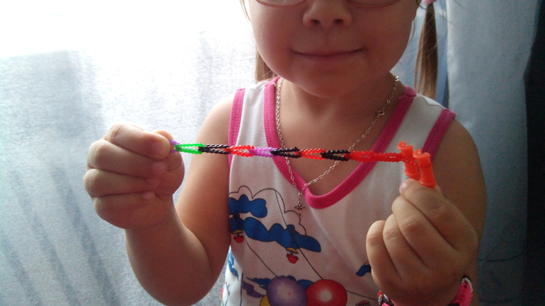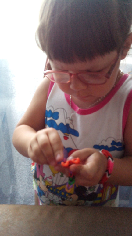 Моя доченька заинтересовалась плетением браслетов из резинок))) и пока мы научились плести самым простым способом))) вот наш репортаж))