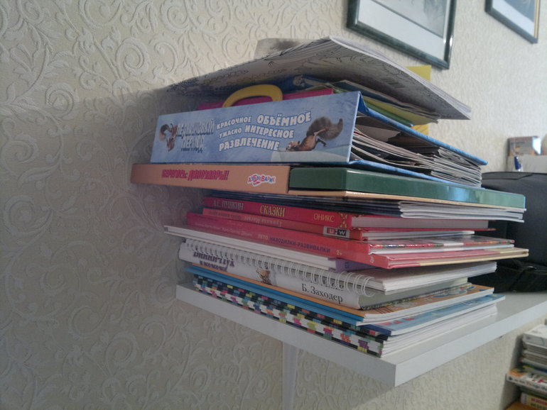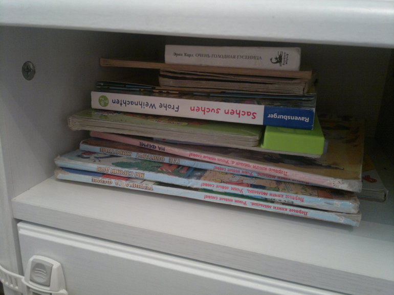 Книжки сына у нас размножаются почкованием видимо, у дочери в комнате свой забитый книжный шкаф, поэтому в последнее время они начали заполонять собою все горизонтальные поверхности в нашей спальне: