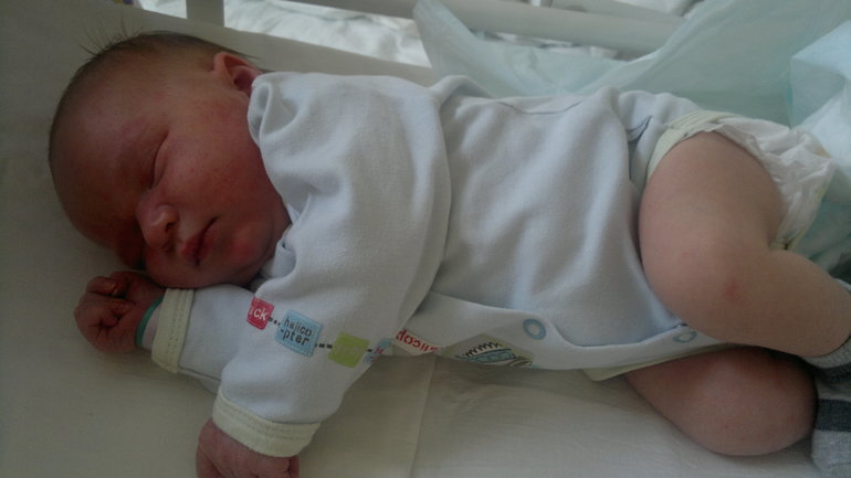 Это сынок в роддоме (сразу одела его в человеческую одежду, ни дня не пеленала)