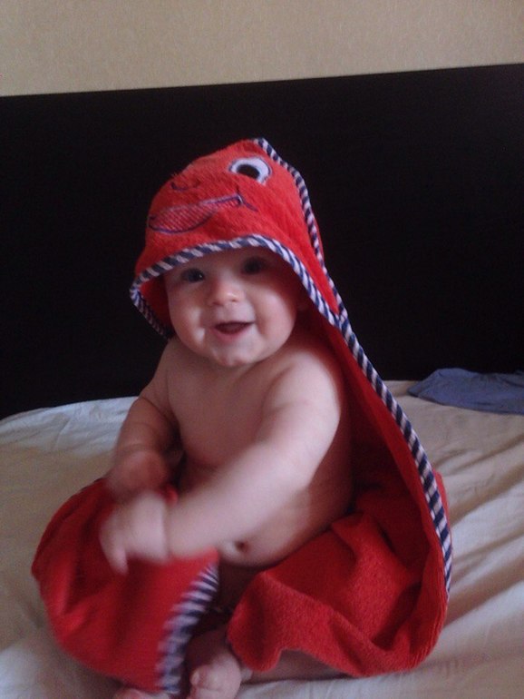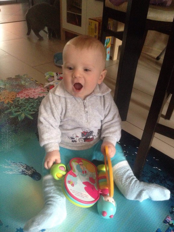 Имеем 2 зуба. Вес 10,4 кг (в одежде) Рост - не знаю. как обычно, пусть будет 74 см)) По прежнему реагируют на еду, которую я ем. Никак не избавимся от пищевой аллергии. Прикорм ест плохо. Питание однообразное весьма. В этом месяце ввела мясо индейки, мешаю с кабачком. Периодически капусточку цветную подмешиваю)) Могу впихнуть около 150-160 грамм, если голоден...но не всегда получается. Встаем в 6.30-7.30, иногда еще просыпаемся по ночам зачем-то, и гуляем по 1,5 часа, пока мама без сознания рядом лежит))) Ест пюре яблочное неохотно, кисло ему. С черносливом тоже самое... Каши вообще никак...Везде ползаем и суём свой нос. Спит днем 2 раза, по-прежнему в колыбельке на балконе. Пережили второй полёт с кровати, снова удачный, слава Богу! Вообще катастрофа какая то, постоянные падения и удары головой об пол, я уже забыла, что так бывает((( скоро начнет вставать, я не представляю, что делать))(( Помню Катю и Соню с 8 месяцев на горшок высаживала, тут никаким горшком не пахнет даже))))))))) Любит он нежно Катю, очень ей улыбается всегда застенчиво))) Так приятно смотреть, когда кто-то кроме тебя еще играет с пупсом)))) Соня наша тоже очень братика любит, но теперь он до нее может добраться и хватается руками, пощипывает. Она терпит, не отталкивает, но жалуется)) Когда СС жалуется, то смешно мамкает, а когда в хорошем расположении духа - бубнит бу-бу-бу))) У моих детей не было ходунков, но тут что-то я все чаще стала о них задумываться, потому как любим мы шнуры, розетки и прочее..... Так, ну и немного фото...