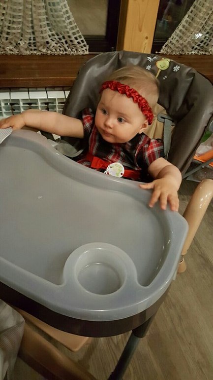 Умелки: мы научились все таки ползать,самостоятельно садимся,сказалт ТАТО(вместо папы)),научились мотать головой типа НЕТ,говорить да,дай.Рычать как горила)).Пробуем слазить с кровати,танцевать и с каждым днем все лучше ходим.Уже можем за одну ручку и уверенней топаем,на пару секунд отпускает ручки.