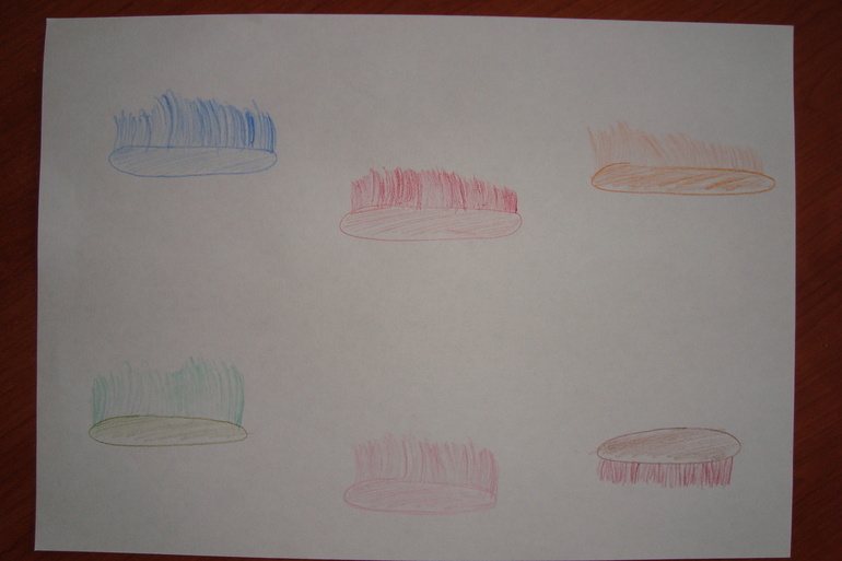 Рисуем щетинки у щеточек. Для каждой подбираем свой цвет.