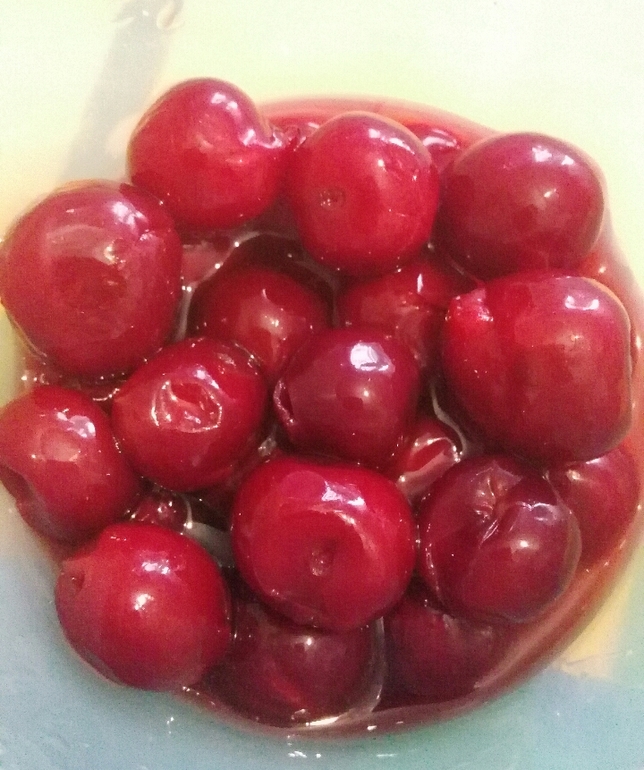 Заливаем вишню коньяком. Дать ей настояться минут 40.
