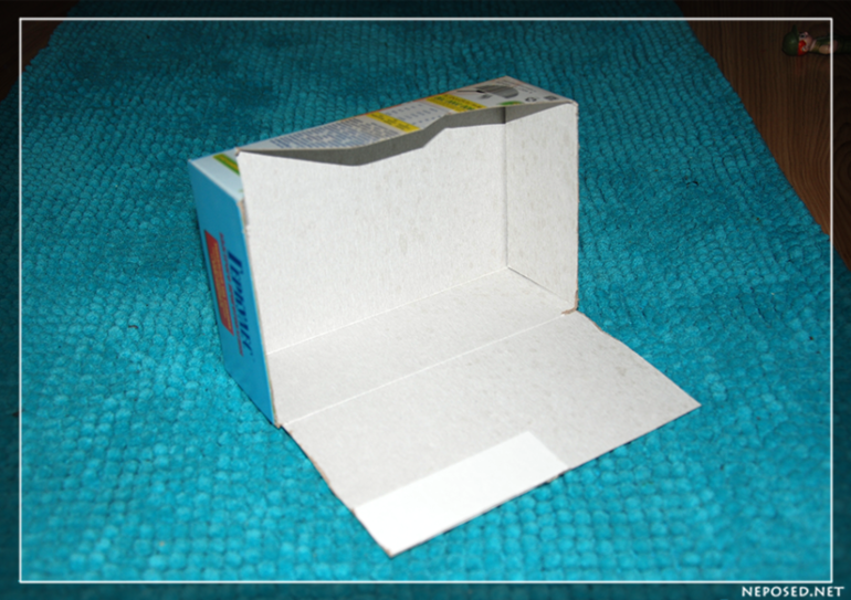 Кусочек подводного мира мы решили сделать в коробке из-под геркулеса, отрезав одну из сторон.