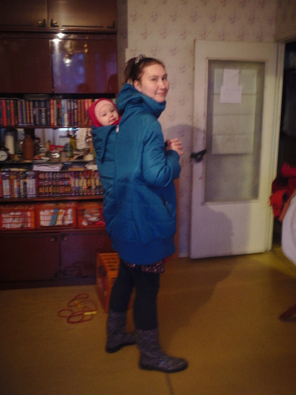 Я даже испытала свою куртку с опцией заспинной намотки, но пришла к выводу, что за спиной под курткой очень неудобно. Ладно, если есть, кому помочь-подправить, а если нет? Так что в куртке решено носиться только спереди.