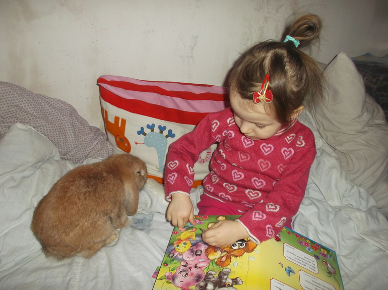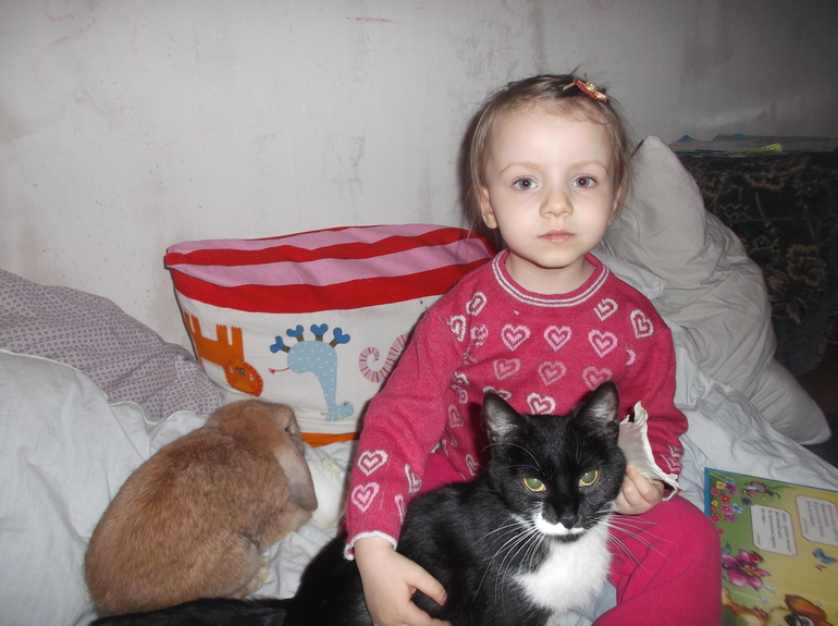 Дочка- симпатяга:) На всю жизнь запомнит, как в коридоре жили. Сколько живности у вас! Иногда тоже охота собачку какую- нибудь.. Но чего-то не решаемся. А кролики у нас тоже были, только в сарае:))) Съедобные:)