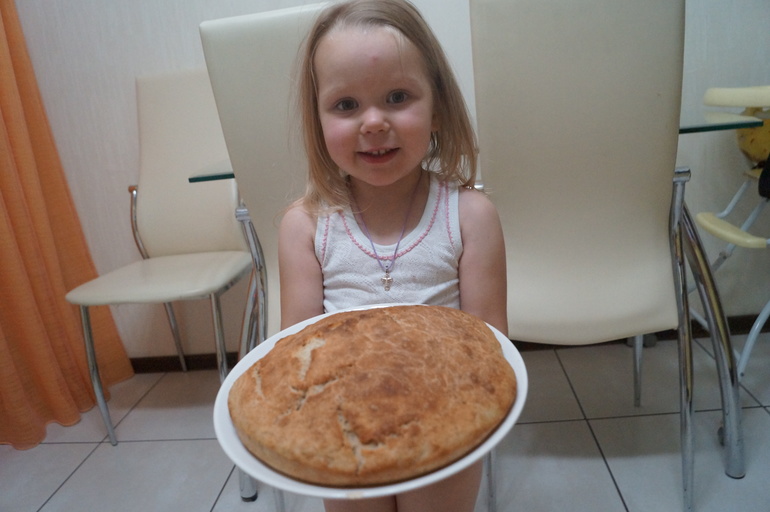 Ну и конечно же пекли хлеб. Так как пекарь из меня не очень хороший и с дрожжевым тестом я на ВЫ, мы заранее купили готовую смесь для выпечки. Хлеб получился хоть и не очень симпатичный на вид, но зато очень вкусный, особенно, когда был еще теплый. Анюта была в восторге от процесса, она очень любит помогать мне на кухне, а тут, практически все делала сама.