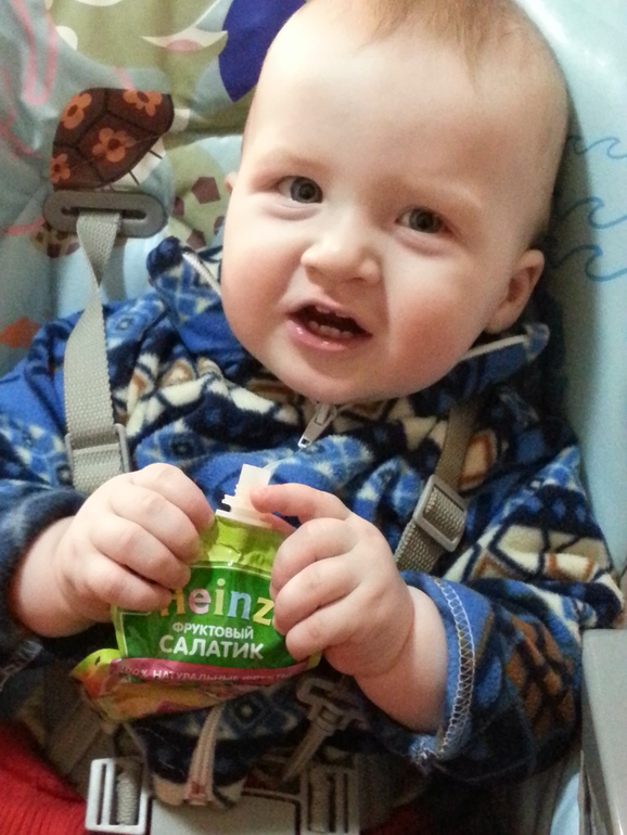 На днях Ванечке исполнилось 10 месяцев, но он упорно отказывался от любой еды, кроме маминой тити )))), а если и съедал что-то, то максимум 4-5 ложечек, и то фруктового пюре (мясо и овощи не признаёт ни в какую!!!!! (((((( ). И вот мы купили стульчик для кормления! В первый же вечер Ваня съел целую упаковку фруктового салатика от Heinz (100 гр) и баночку "Бабушкиного лукошка" - тыква-молоко (ну, маме ложки 3 тоже досталось))))). Пусть, опять фрукты, но ранее за ним такого не замечалось! Я думаю, мы на пути к успеху - цветной капусте, кабачкам и говядине!!! ))))))