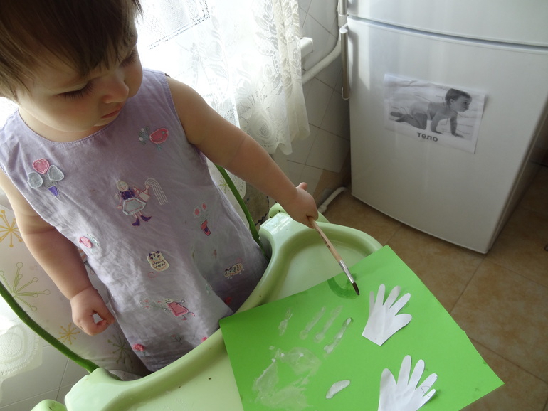 Следующий день посветили остальным частям тела,а именно ножкам, ручкам, пальчикам, животику,попе, спинке и пупку)Обнимались, бегали,ползали,танцевали, прыгали, зарядку, массаж делали и тд. Еще понравилось кремом мазать кожу. Вот,что в результате: