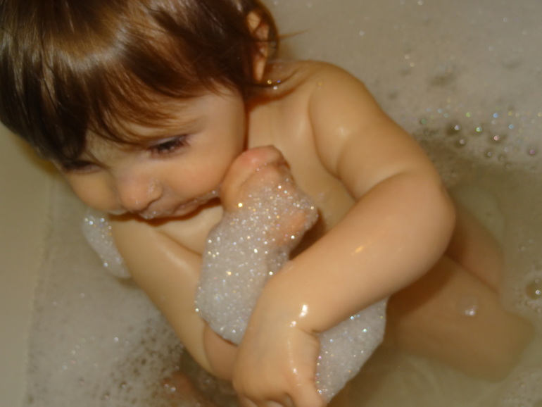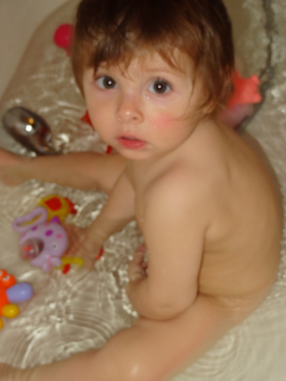 А так начиналось первое знакомство с водой!!!Мой червячочек любимый)))