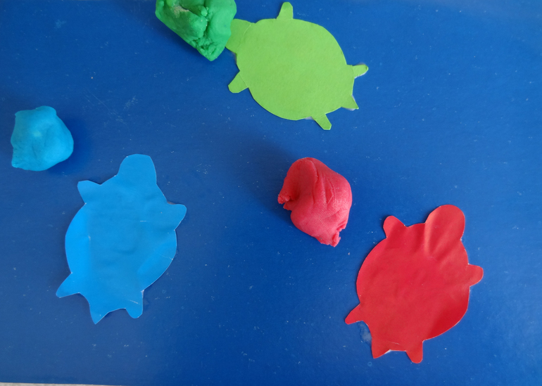 День черепахи прошел отлично. У нас появилось ооочень много пластилина,так что черепаху закормили пластилином,а еще украшали панцирь)))
