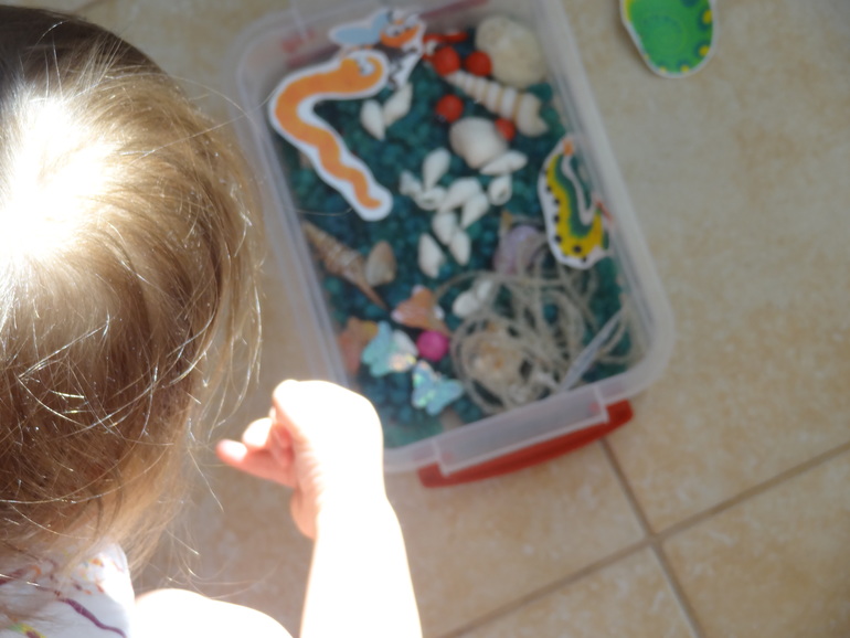 Сенсорная коробка со всякой всячиной!!!Не купила я насекомых игрушечных...нет таких в Виннице(((