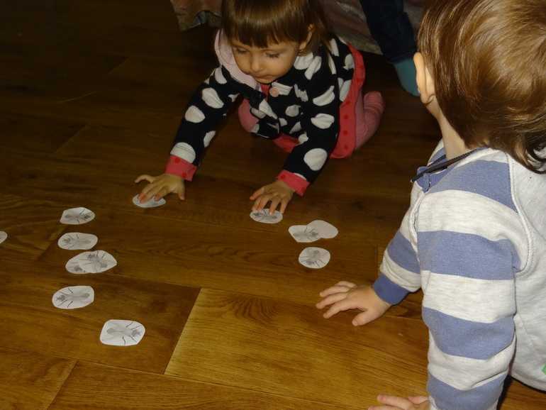 Примеряем тапки: большие, средние и маленькие. Вообще детки наши расстроились так как далеко уйти в тапках не смогли)))