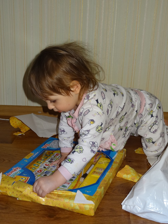 Доченька уже знала,что у нее сегодня день рождения и что все подарки для нее)Вообщем время не теряет))) Что там друг Тихон подарил