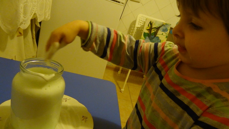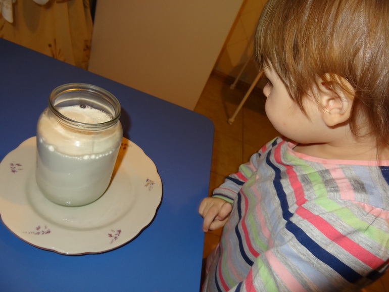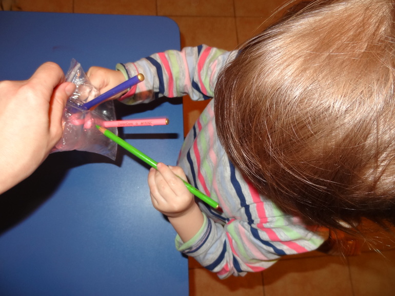 Саша самостоятельно протыкала пакет карандашами!!! Пару капелек все таки вылились из пакета,но вообщем все удачно