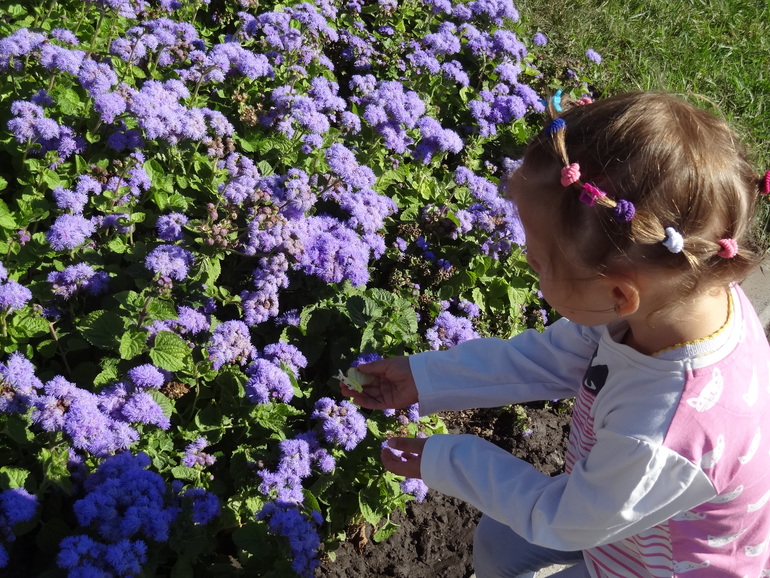 На цветочной поляне очень много бабочек и Саша нашла и нашу)))