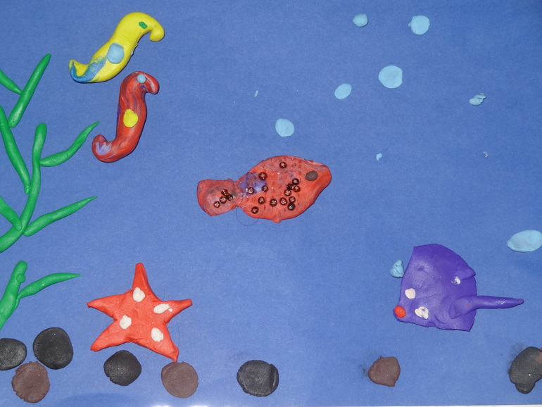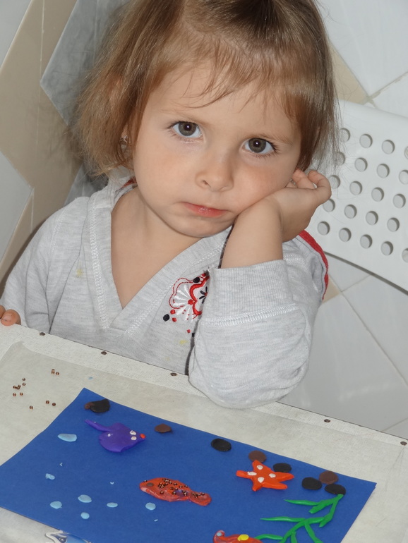 Сашулька в процессе создания пластилинового подводного мира))))