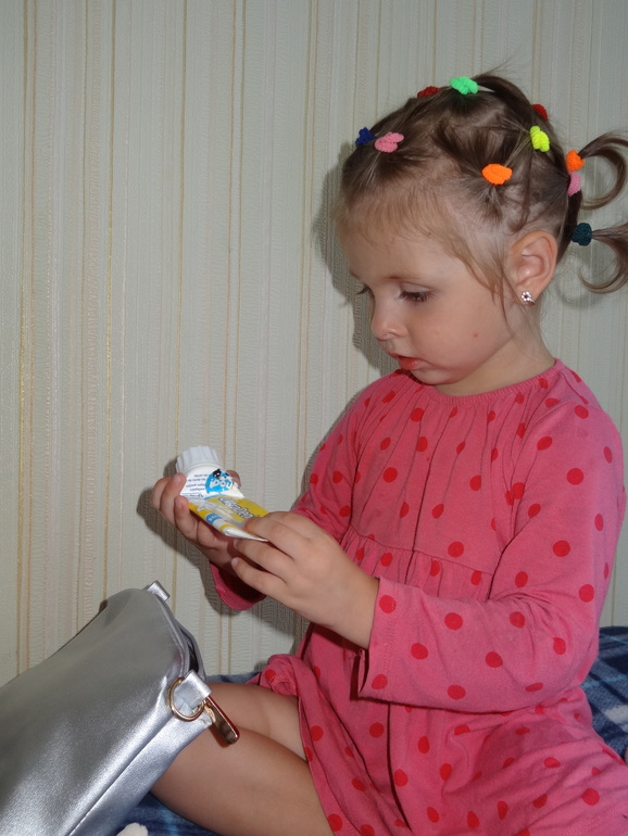 Сашеньке было интересно не только понюхать, но и потрогать, что же в бутылочке)))