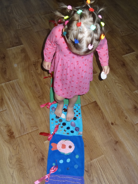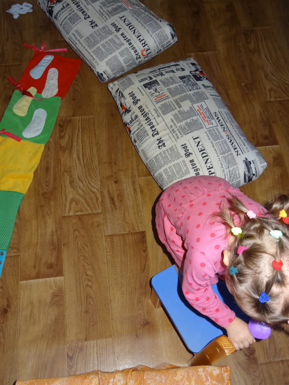 Саша долго бегала по коврику, по подушкам спасалась от "крокодилов" , прыгала со стульчика, пролазила под креслом))) И так раз 20)))
