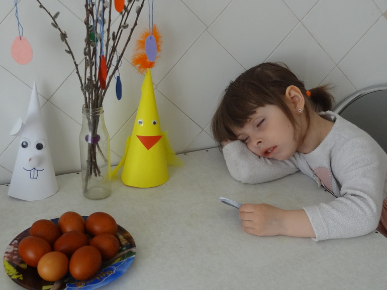 Ну а после дневного сна уже во все поиграли, только не хочет доченька битву яйцами устраивать) Зато ей так понравилось бегать по квартире и искать киндеры( внутри ведь конфетки). Oh,yes - приговаривала она при каждой находке