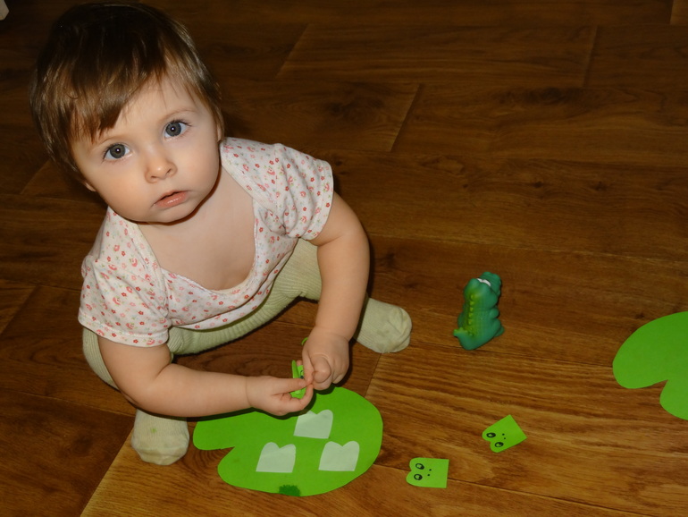 С кувшинками Сашеньке очень понравилось играться, я была удивлена, что она сразу стала жабку на тень садить)))Вот такая умничка растет))))