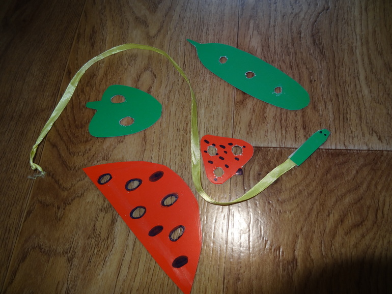Шнуровки!!!!У нас есть конечно яблочко с червячком готовое уже,но решили с бумажными поиграть)))