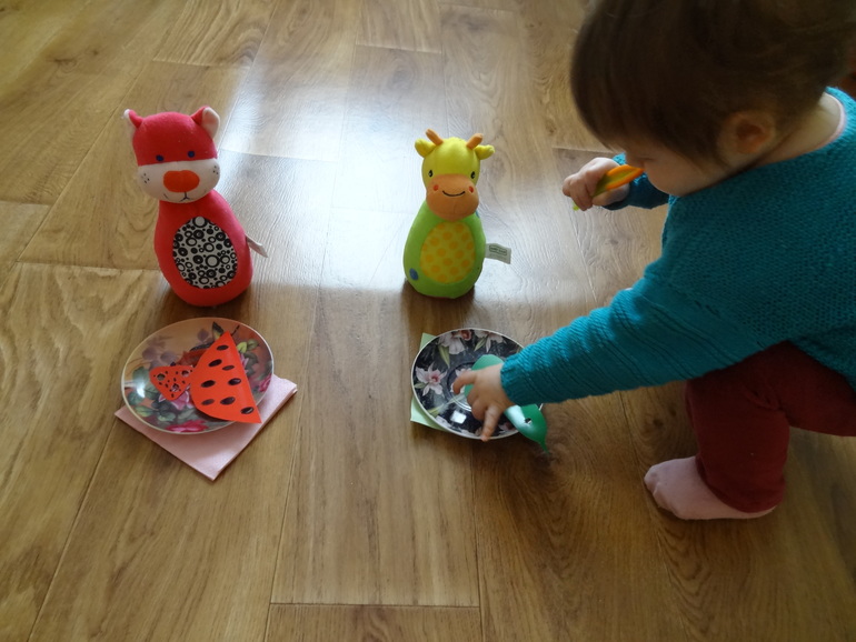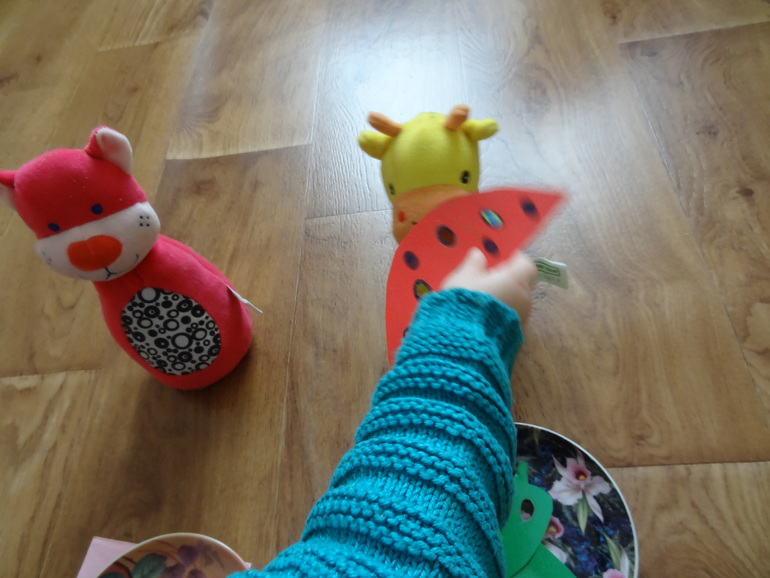 Строили башенки,а потом их накрывали красной и зеленой тканью,сравнивали,но Саша с удовольствием искала башни под тканью)))Еще отмечу,Саша уже умеет башенки строить,вот буквально пару дней "как умеет" это делать,а то все рушила их)))
