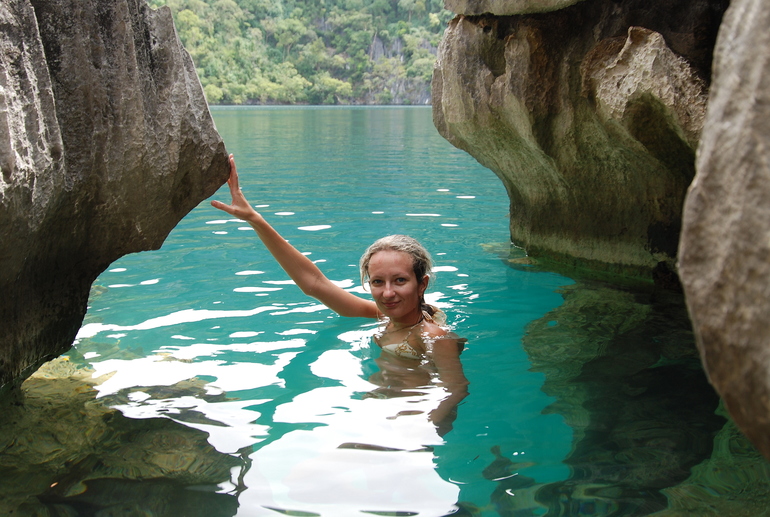 🧐за ночь и утро совершила множество увлекательных туров по всему миру(глаза в кучу уже),больше всего похоже на озеро Барракуда,Филиппины.