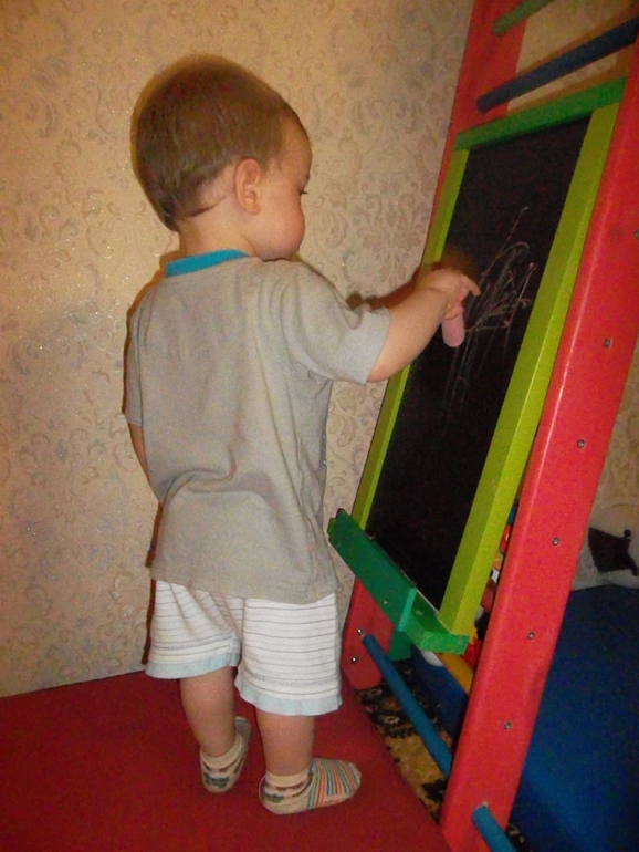 Еще на нашем спорткомплексе есть доска для рисования, на ней Кирилл рисует мелом.
