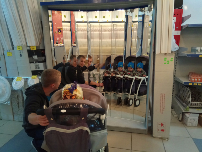 Не знаете, как удивить своего малыша? Зеркало в отделе обоев строительного магазина)) Ребенок ооочень удивился)))