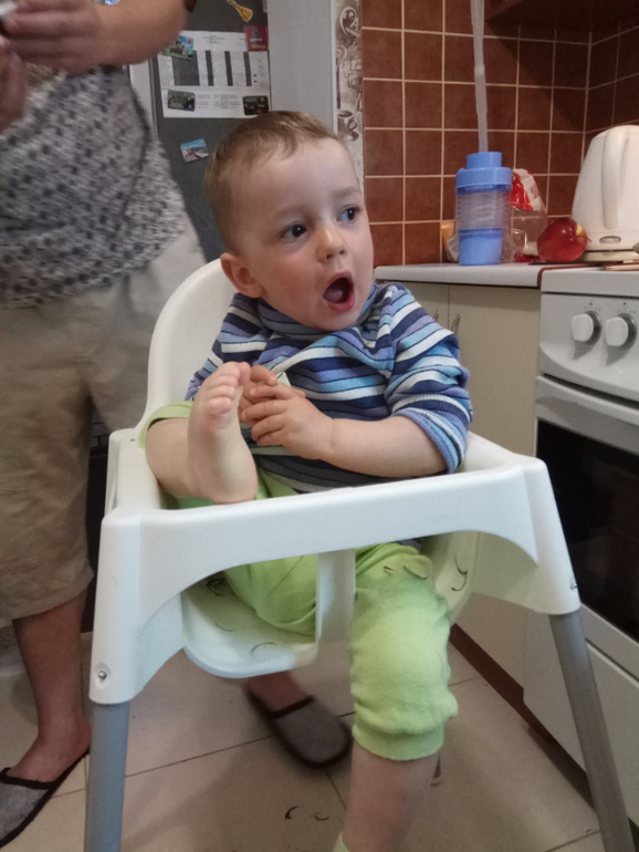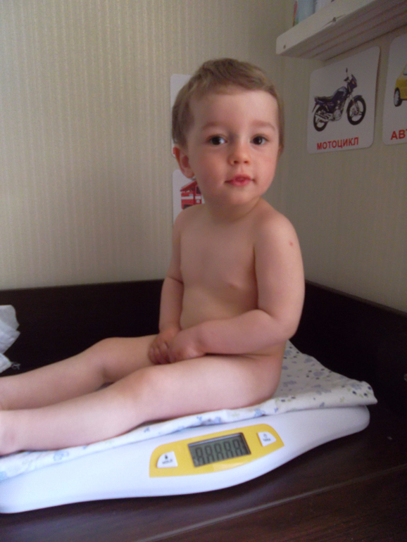 Контрольное взвешивание раз в месяц. Ох и нравится Кирюше нажимать кнопочки)) Вот вы мне скажите, он правда такой худой или бабушка как всегда нагнетает?