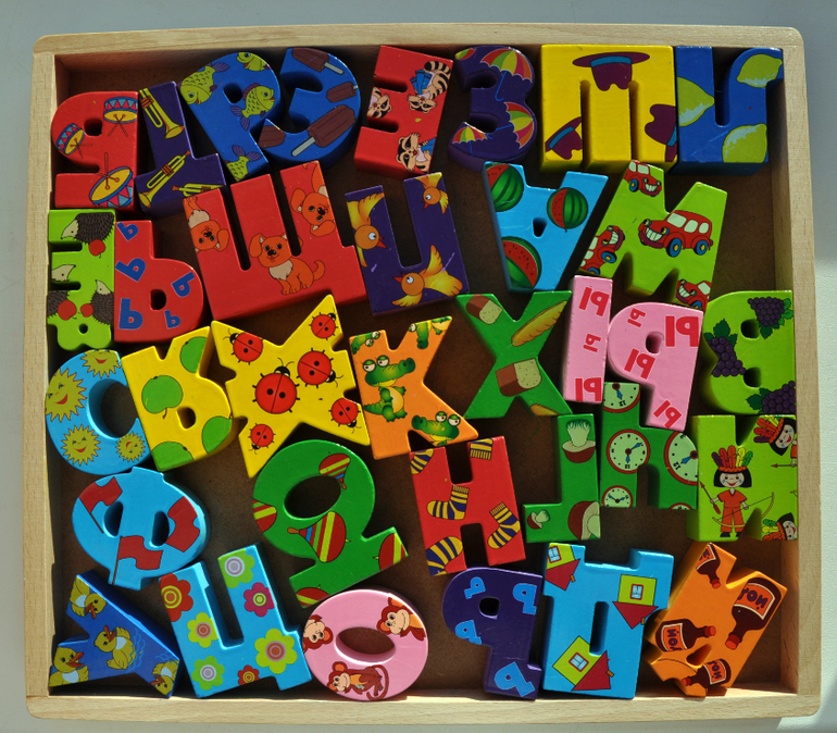 Буковки отличные, крупные, размером с Василискину ладошку. Сделанные из дерева, покрашенные краской и вскрытые лаком таким образом, что рисунок, который находится на лицевой стороне буквы, не сотрется и не облезет НИКОГДА. Рисунок, который изображен только на лицевой стороне буквы и начинается с этой буквы. Обратная их сторона тоже очень красивая, так как краска, которой покрыты буквы яркая, сочная и радует глаз. Эти буквы находится в деревянной коробке в один слой, не насыпью, а ровнёхонько в один ряд, таким образом их хорошо видно и без труда можно отыскать нужную букву. Минусом считаю, что на коробке нет крышки.