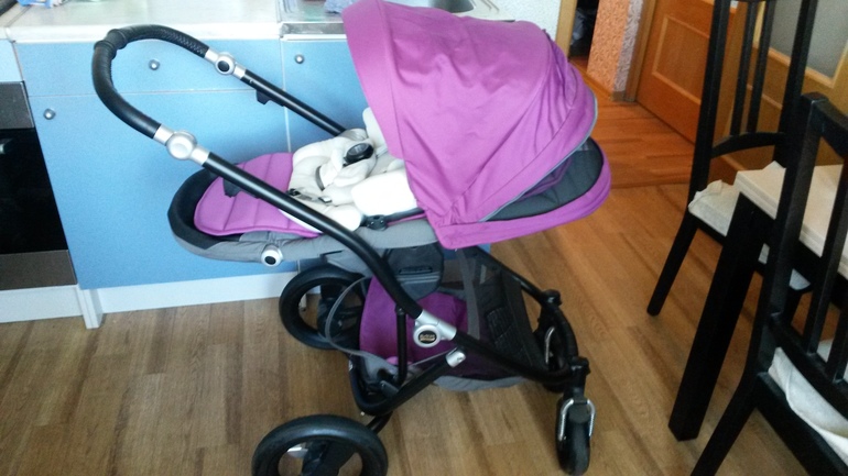 Колясочка в идеальном состоянии.Очень хорошее качество.В комплекте вставка для новорожденных,дождевик,накидка на ножки.