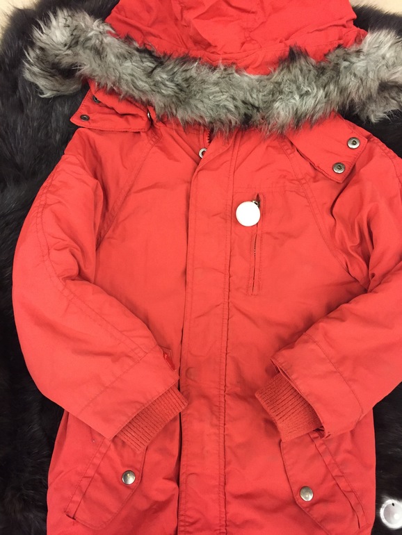 Добрый день, куртка Pinki красная в каком состоянии и какие минусы? На какую погоду? Спасибо