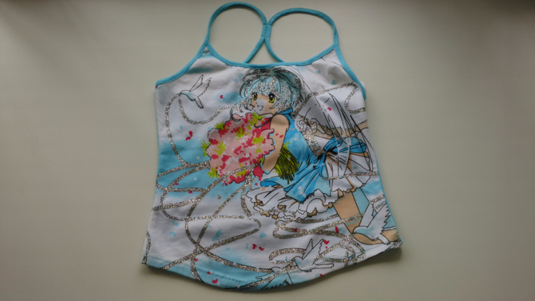 Пристрою очень красивый топ, моя Старшая внучка его переросла. Точно размер не знаю какой, т.к. маркирован топ S.