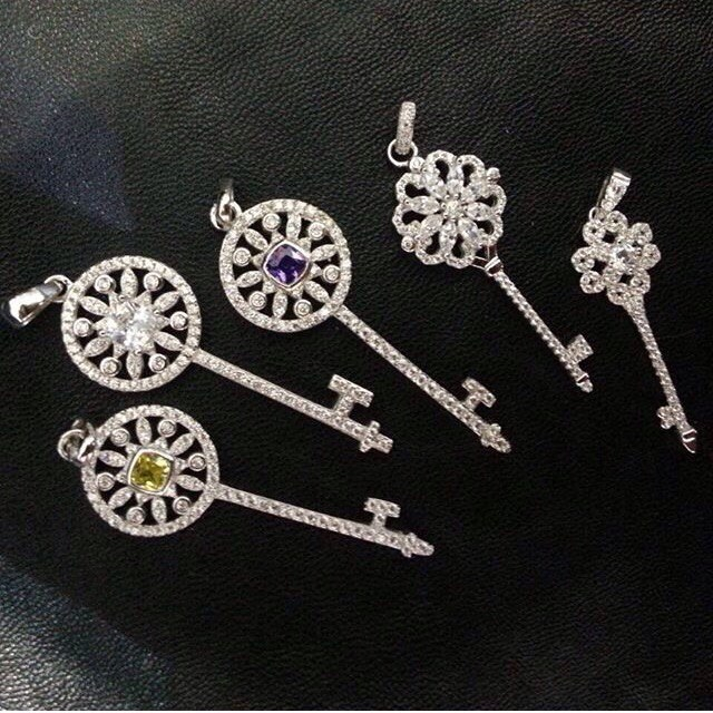 Ключик на цепочке Tiffany серебро 925 пробы с цирконами