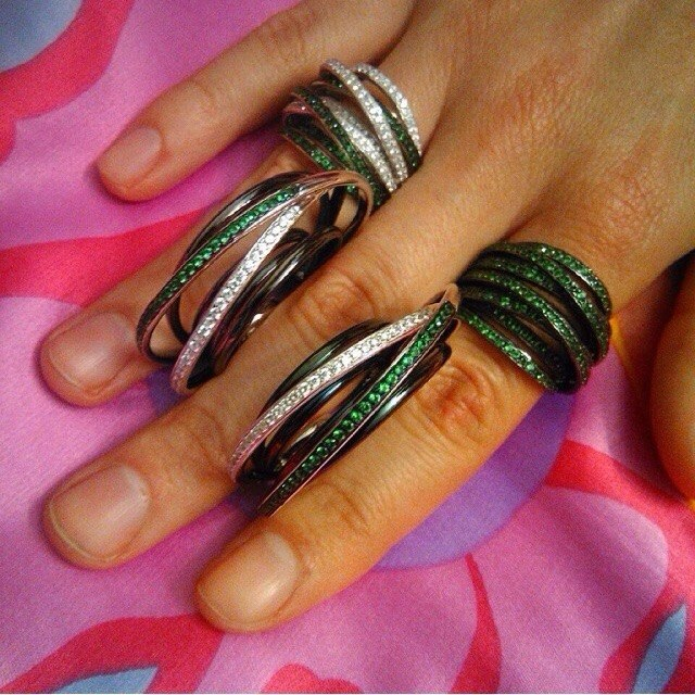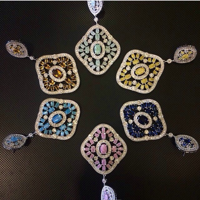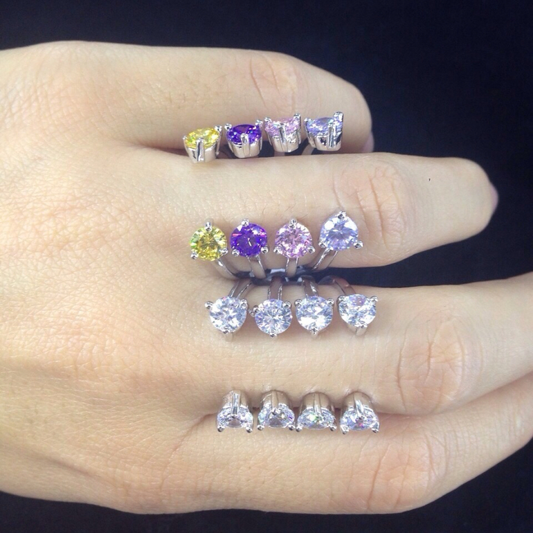ДД!Есть ли колечки с множеством цветных камней, похожие на серьги ниже?И какова стоимость серьг с одним цветным камнем?