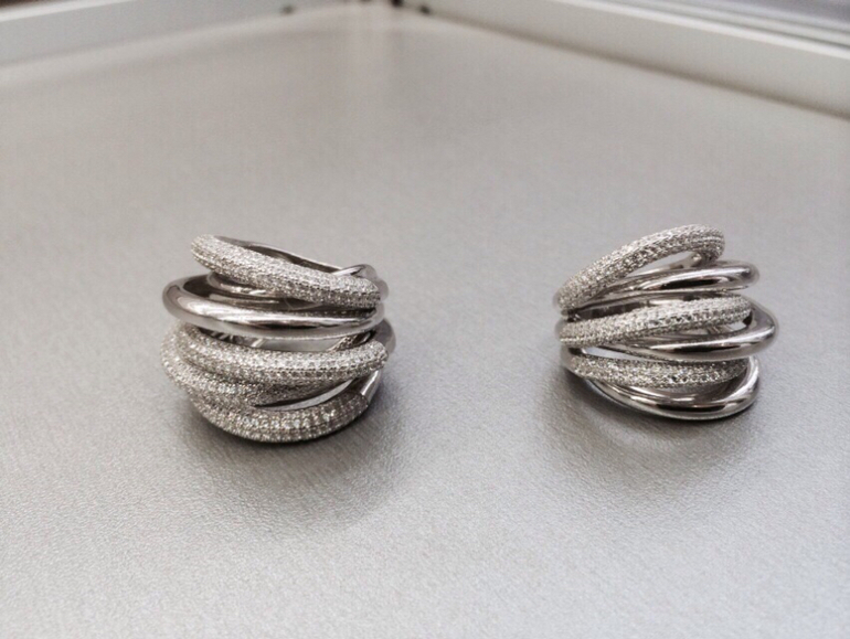 Серьги DeGrisogono. Серебро 925 пробы. Вставка-цирконы.Застёжка-гвоздики.
